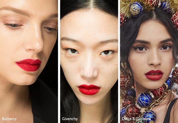 برند دی اند جی در مدل های خود بر خط چشم کمانی و رژلب سرخ تمرکز کرد. امسال رژ لب های سرخ مات و البته طبیعی مد است. رژلب سرخ نیمه مات نیز می تواند محبوب باشد.