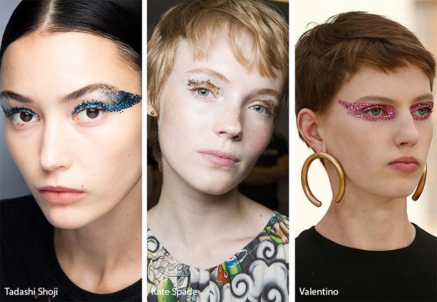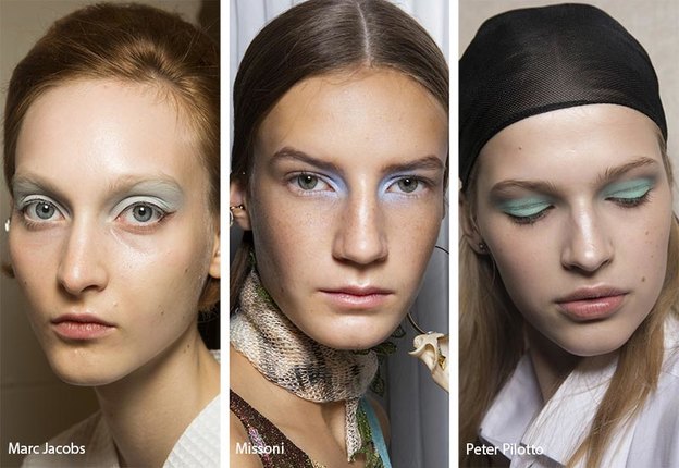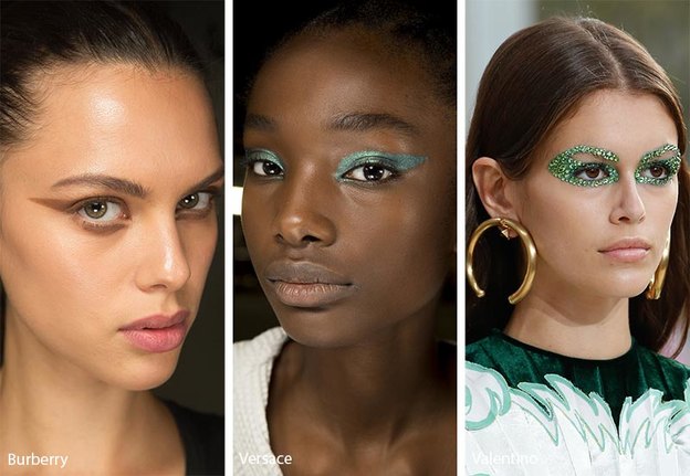 به نظر می رسد خط چشم های رنگی و پهن در دور چشم کاملا مد شده است و هنرمندان سایه های پهن و رنگی ایجاد خواهند کرد. گویا برخی از طراحان این سبک آرایش از پرندگان الهام گرفته اند. به این صورت که در اطراف چشم ها یک هاله بال مانند یا جواهرمانند ایجاد می شود. مدل های ورساچه از سایه های سبز متالیک استفاده می کنند.