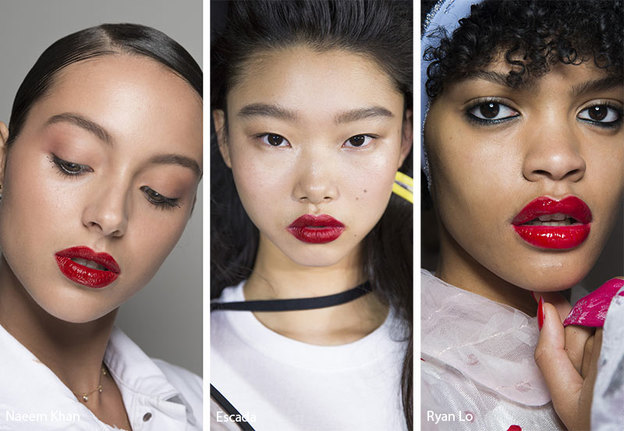 همانطور که می دانید رژلب سرخ هرگز از مد نمی رود. در بهار و تابستان 2019 نیز رژلب سرخ براق مد شده است و سرخ مات نیز کاملا از بین نرفته است. امسال می توانید رژلب سرخ را به تنهایی استفاده کرده و یا اینکه کمی آرایش چشم را به آن اضافه کنید. برخی از مدل ها رژ مایع سرخ را با گونه های تیره و سایه قهوه ای همراه می کنند تا شبیه سفید برفی شوند.