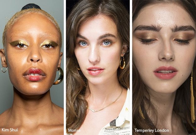 استفاده از سایه چشم طلایی می تواند درخشش چشمان تان را چند برابر کند. به همین دلیل میکاپ آرتیست های بهار و تابستان 2019 برای ایجاد یک آرایش روشن و جذاب از این رنگ استفاده کردند. مدل های هفته مد سایه های طلایی سنگین را با خط چشم قهوه ای هماهنگ می کردند. سایه طلایی رنگ می تواند برای پلک پایین و بالا استفاده شود. بهترین نمونه استفاده از این سایه چشم به این صورت است که در کل پلک بالا استفاده شده، از داخل به بیرون کشیده می شود و همچنین در داخل چشم مالیده خواهد شد.