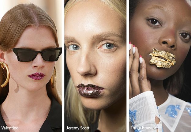 در برخی از هفته های مد دیده شد که میکاپ آرتیست ها لب های مدل ها را اکلیلی کرده و از اکلیل و براق کننده های درخشان استفاده می کنند. پودرهای براق، براق کننده و کمی اکلیل می تواند لب هایتان را جذاب و درخشان کند. برخی از میکاپ آرتیست از رژلب های متالیک هم استفاده می کنند. کمی برق لب بر روی رژ لب آبی سیلوری نیز می تواند به یادماندنی باشد.