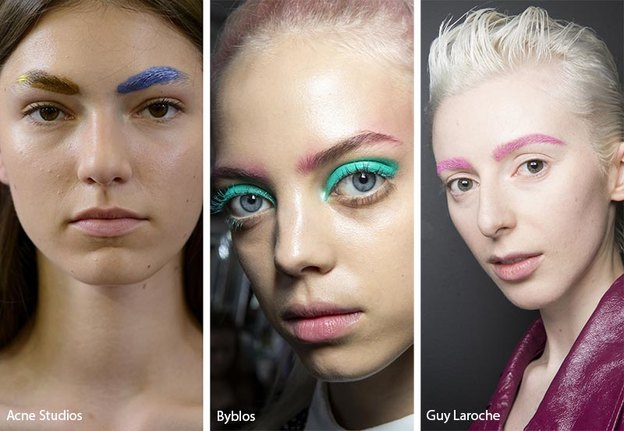 آرایشگران و هنرمندان از نکات مختلف الهام گرفته و آرایش های جدید را ابداع می کنند. رنگ های جالب و مهیج بهترین راه برای انجام این کار هستند و گویا در بهار 2019 ابروهای رنگارنگ مد هستند. اغلب مدل های هفته مد چهره ساده دارند اما برخی از آن ها از ابروهای رنگارنگ استفاده می کنند. در بیشتر موارد یک ابرو به رنگ آبی و یک ابروی دیگر کاملا سفید بوده یا رگه های از رنگ سفید در آن دیده می شود. برخی از مدل ها از ابروهای قرمز، زرد و سبز استفاده می کنند، در حالی که برای لب و چشم از رنگ های روشن و بیرنگ استفاده خواهد شد.