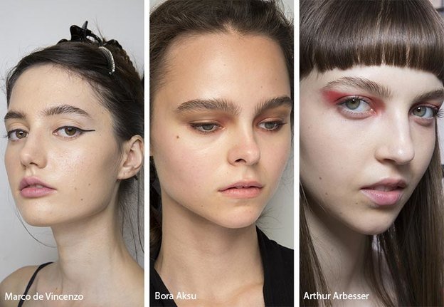 اگر دوست ندارید کل صورت تان بدون آرایش و کمرنگ باشد، پس کمی سایه چشم کمرنگ و محو می تواند در تابستان 2019 به چهره تان رنگ و لعاب دهد. در هفته های مد از این مدل سایه چشم استفاده شد، هرچند که استثنائاتی وجود داشت. برخی از مدل ها از تنها از سایه محو استفاده کرده و برخی از آن ها این سایه را با رژلب قهوه ای ادغام نمودند. از آنجایی که چهره درخشان و طبیعی است، این سایه می تواند چشم ها را برجسته تر نشان دهد.