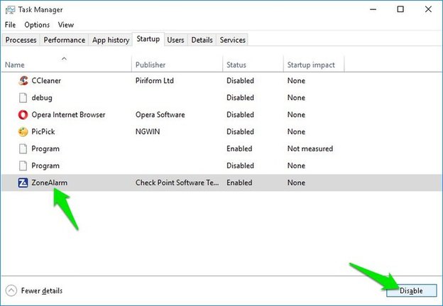 - همهی برنامههای غیرضروری را انتخاب کرده و با کلیک کردن روی disable، آنها را متوقف کنید.