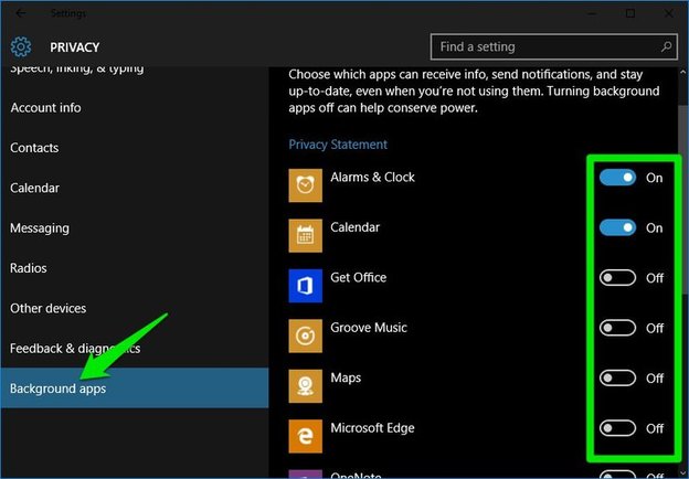 بسیاری از برنامههای خودِ ویندوز در پسزمینه اجرا میشوند تا اطلاعات را به روز نگه دارند. در مقابل این برنامهها باتری هم مصرف میکنند (حتی در زمانی که از آنها استفاده نمیشود). با این وجود ویندوز 10 بخش مخصوصی را برای فعال/ غیرفعال کردن این برنامههای پسزمینه دارد.