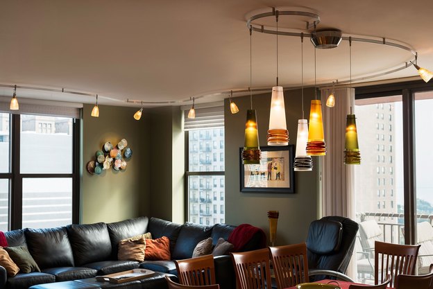 برای درخشش فضای خود می توانید چراغ آویزی تزیینی نصب کنید. این چراغ های آویزی در ارتفاعی از سقف قرار گرفته و یا اینکه حالت فنری دارند و خودتان می توانید ارتفاع آن ها را مشخص کنید. این چراغ های آویزی در رنگ ها و جنس های مختلف وجود دارند، از جنس کریستالی کلاسیک تا مدل های ساده پارچه ای، سیلندرهای فلزی مدرن یا اشکال فلزی رنگارنگ.