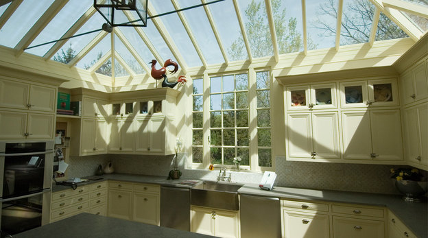 نورگیر طبیعی سقف یکی از راحت ترین گزینه های ممکن است. در صورت امکان، بخشی از سقف طاق دار را برش داده و یک نورگیر ایجاد کنید. در ابتدا باید با یک ساختمان ساز در این باره صحبت کنید تا بدانید آیا امکان ایجاد چنین تغییری در سقف وجود دارد و اینکه با سیم های برق یا اجزای دیگر ساختمان تداخل نمی یابد. این گزینه ارزان نیست، زیرا باید برای عصر هم گزینه های روشنایی نصب کنید، اما نورگیر سقف شکل سقف را زیباتر نموده و به نور طبیعی اجازه می دهد که به فضای خانه وارد شود.