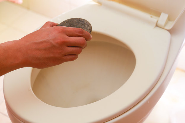 سنگ پا هم یکی دیگر از روش های عجیب اما موثر برای تمیز کردن کاسه توالت است. در ابتدا سنگ پا را در آب گرم خیس کنید، سنگ پا و توالت باید خیس باشند تا خش خوردگی ایجاد نشود. لکه ها را خوب بمالید تا از بین بروند و سپس توالت را بشویید.