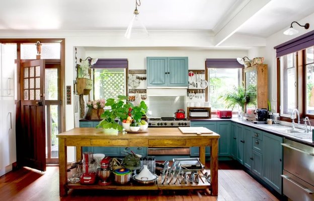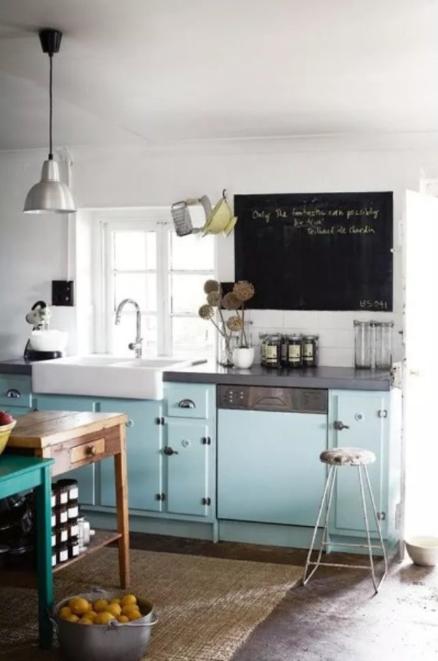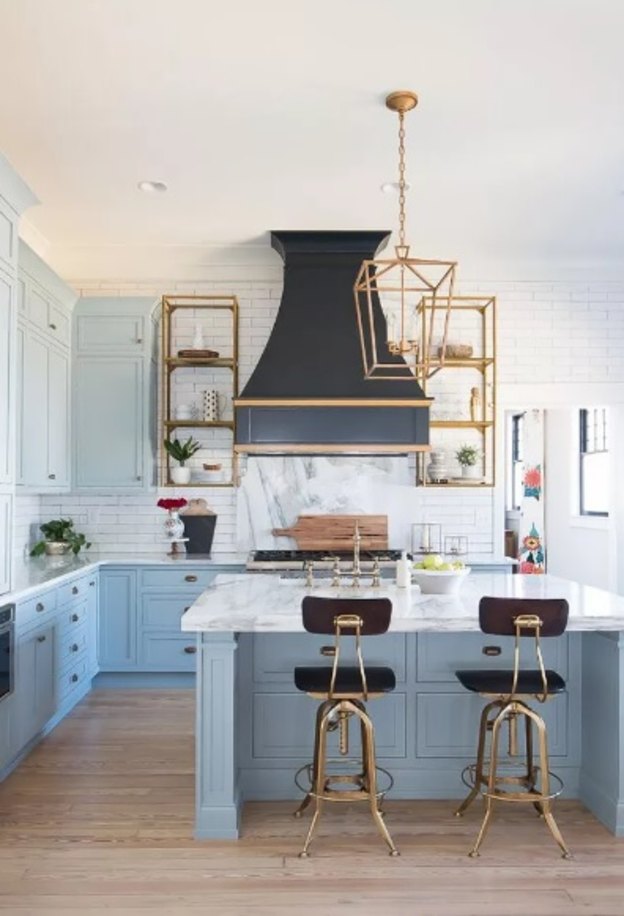 بسیاری از آشپزخانه های این فهرست از کابینت های سنتی یا رایج استفاده کرده اند که البته برای رنگ های روشن مناسب می باشند. اما این آشپزخانه ثابت می کند که رنگ های روشن به سبک های امروزی هم می آیند. این کابینت های مدرن با رنگ آبی کم رنگ بسیار زیبا شده اند.