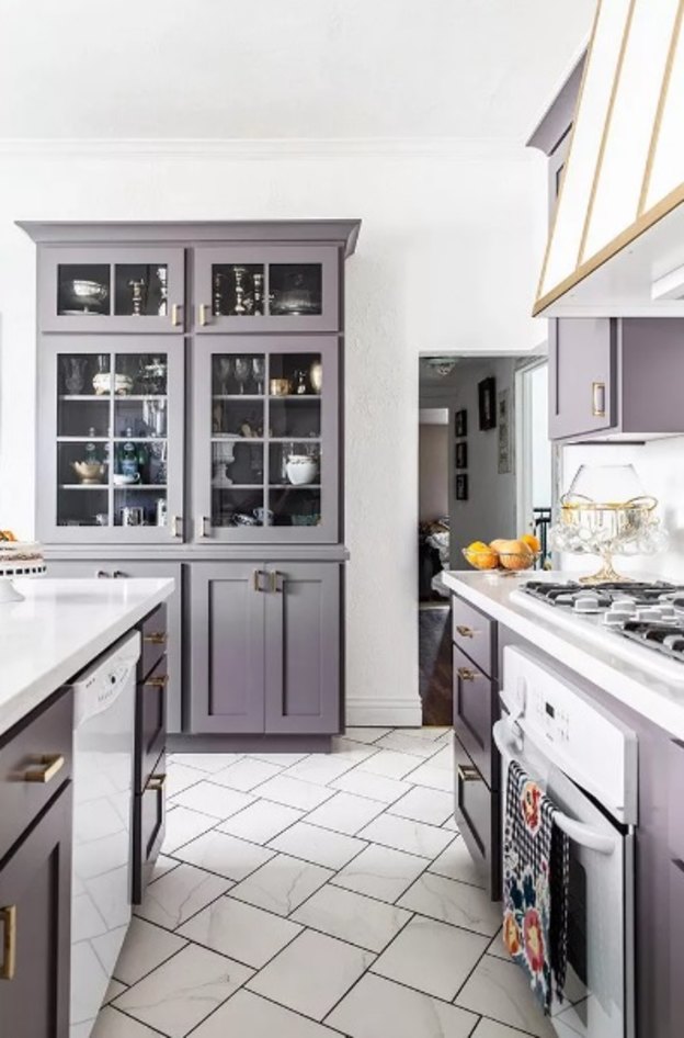 بنفش بادمجانی رنگ بسیار زیبایی است و به همین دلیل این آشپزخانه مدرن چشمگیر است. کابینت های بلند ظاهر آن را شکیل نموده و رنگ بادمجانی هم جلوه زیبایی را پدید می آورد.