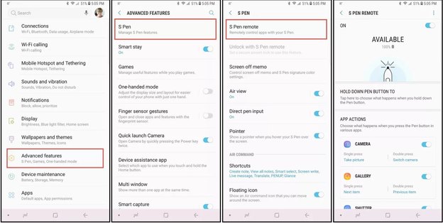 باید به طور خودکار به گزینه های S Pen Remote بروید.