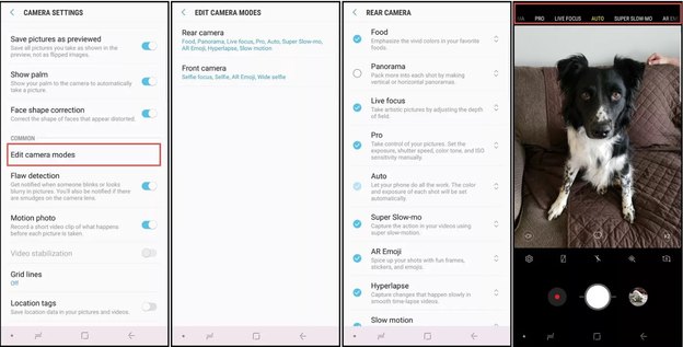 گزینه Rear camera را انتخاب کنید تا گزینه های حالت های دوربین عقب را تغییر دهد، برای ویرایش حالت های تنظیمات دوربین جلو نیز باید دوربین جلو را انتخاب کنید.