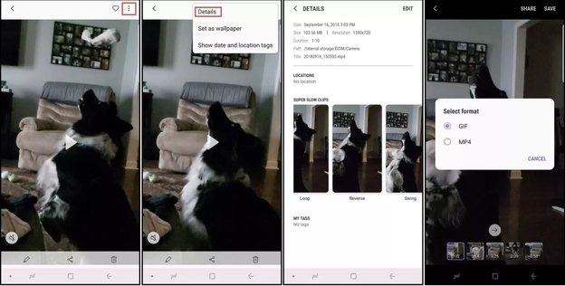 همچنین می توانید آن کلیپ های Super Slow-mo را به گیف تبدیل کنید تا به صورت معکوس یا چرخشی نمایش داده شود. برای انتخاب این تنظیمات: